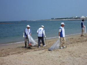 大変暑い日差しの中、約400人(参加団体21団体)の方々と、海岸清掃に汗を流しました。